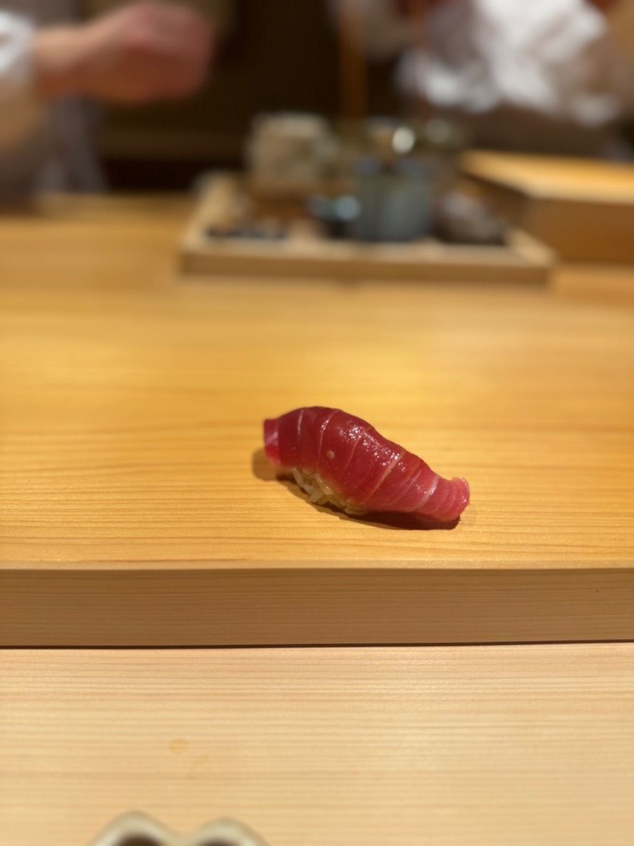 He sources fish through wholesale connections [NEEDS VERIFICATION]: market source — Tsukiji vs Toyosu vs Fukuoka local. His rice philosophy is purely personal. He adjusts the vinegar blend daily based on humidity and temperature, treating each grain like it matters. Because it does. The maguro here tastes different not just because of the tuna quality, but because the shari provides the perfect acidic counterpoint to the fish's richness.